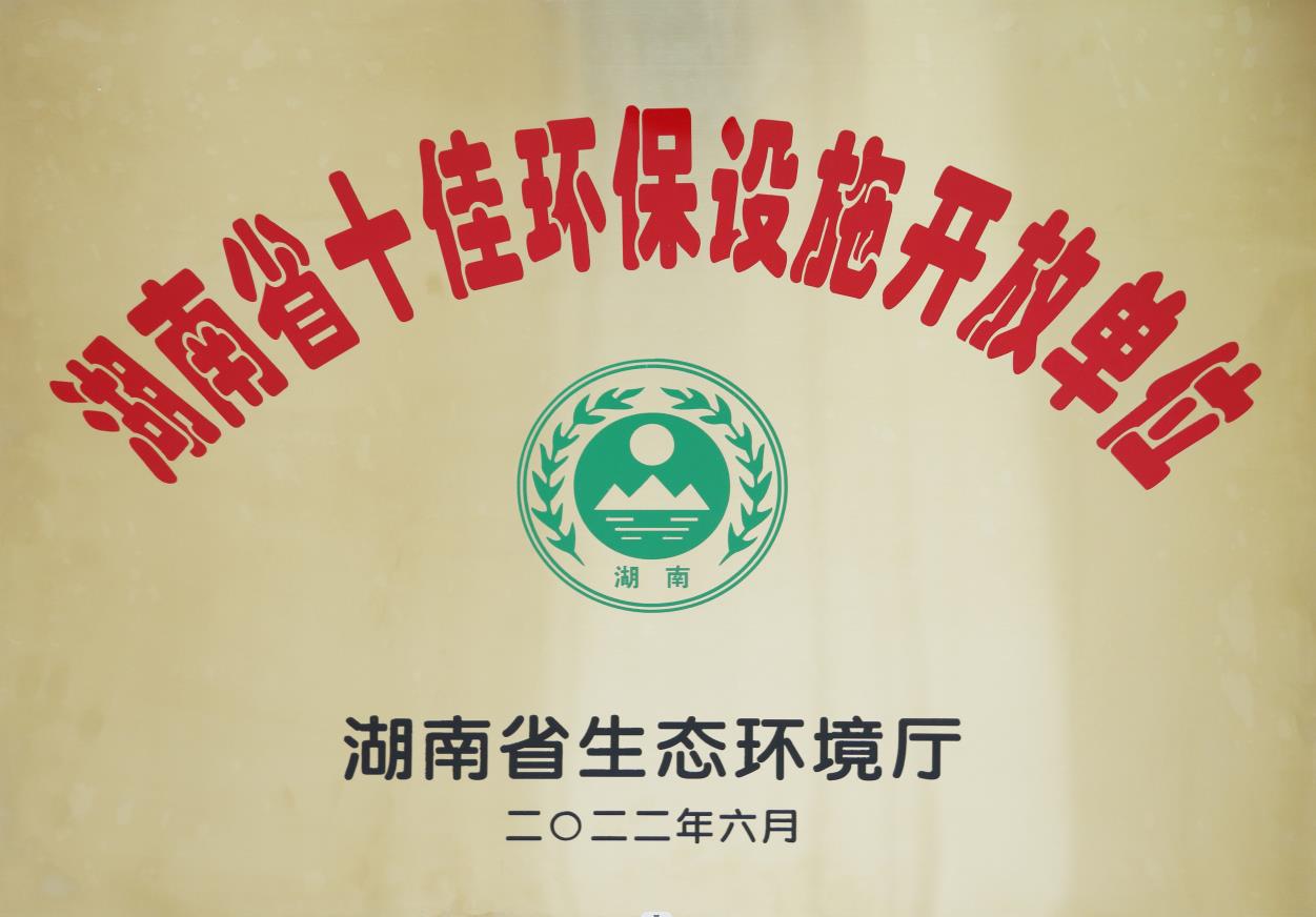 2022年6月被湖南省生態(tài)環(huán)境廳授予“湖南省十佳環(huán)保設(shè)施開(kāi)放單位”